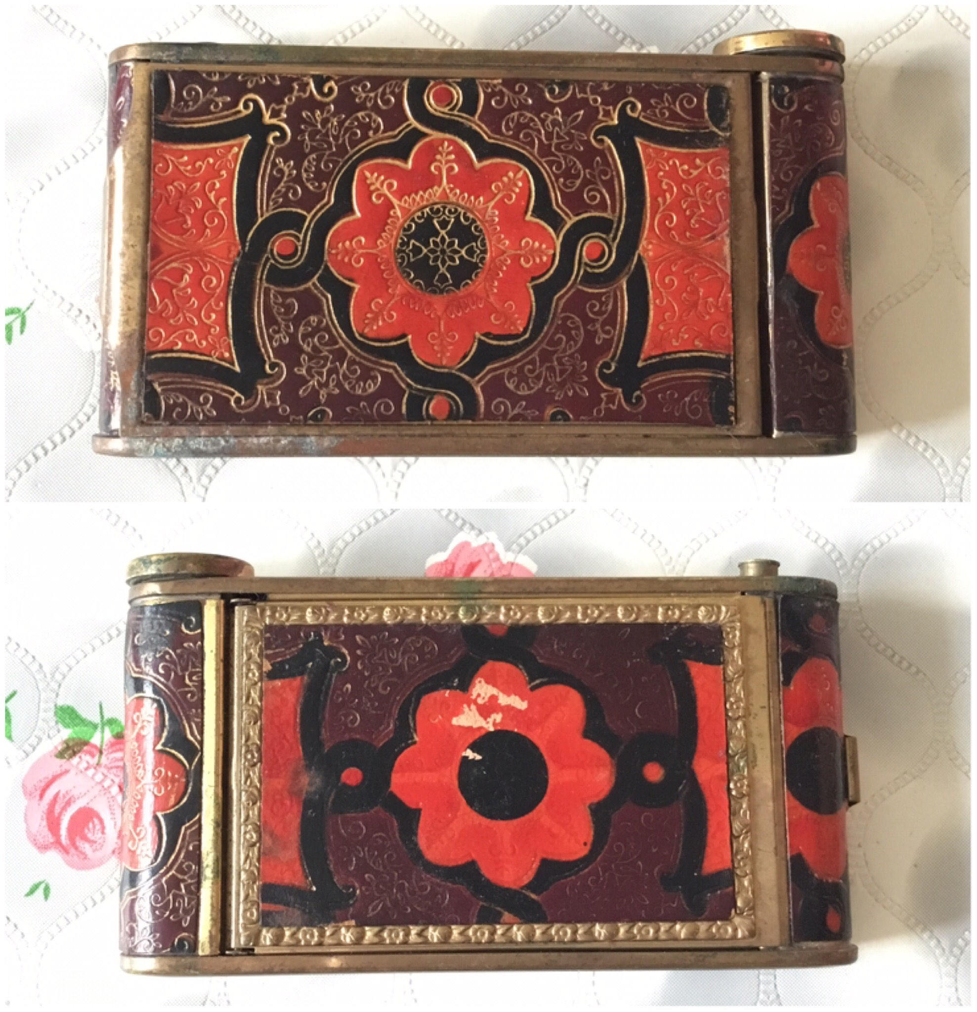 Ladies vintage kigu powder compact and cigarette case box part case metal bag. Victoria floral pattern cigarette case. Vintage 1950s ladies kigu party powder compact and cigarette case with lipstick holder. Limited time sale easy return. This is a very attractive floral design with an intricate, floral pattern that gives it a stylish look that is typically stratton.