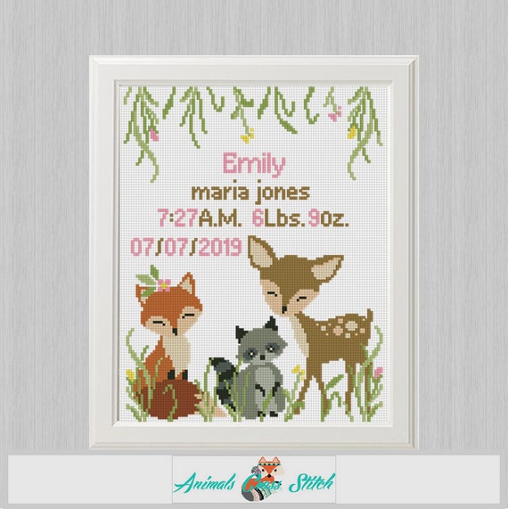Adorable animals set against patterned backgrounds make up the delightful counted cross stitch savannah birth record. 123 count with me birth sampler (kit) (none selected) product no: Baby cross stitch pattern personalized modern birth announcement diy pattern woodland animal fox deer bear pdf. This item is unavailable | etsy. Links preceded by a plus sign (+) require free registration (to that particular site, not to cross stitch pattern central) before viewing.